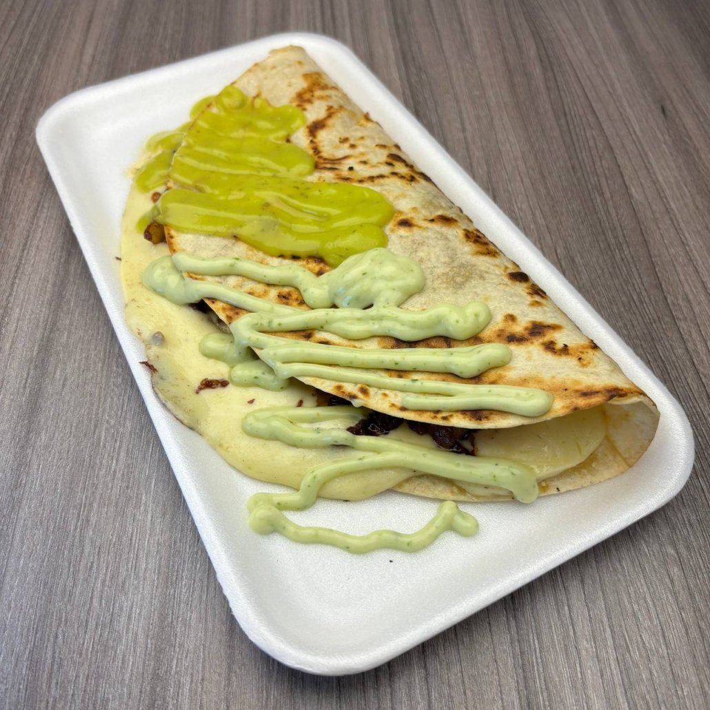 Tortilla Harina, Triple Queso, Carne Molida, Pollo desmechado, Salsa casa y guacamole.